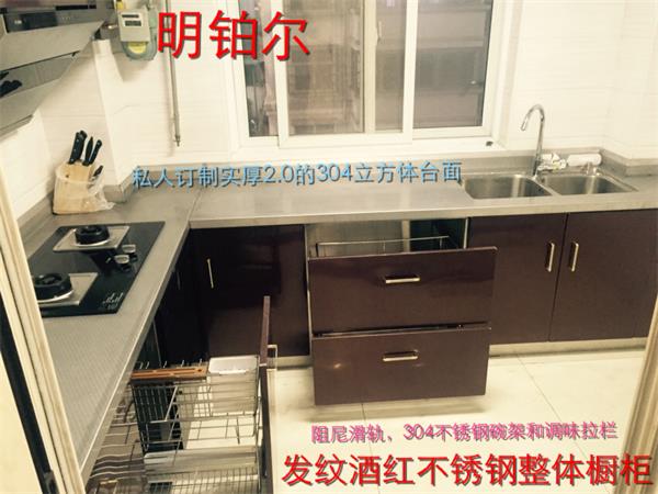 明鉑爾不銹鋼櫥柜,零甲醛,不怕水,不怕火,不變形,可以使用100年,售后無憂,德國五金,304食品級材質(zhì),集成灶一體,為您和家人健康保駕護(hù)航!